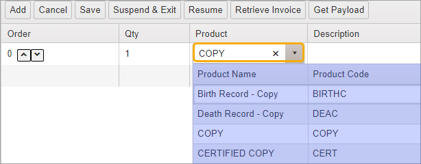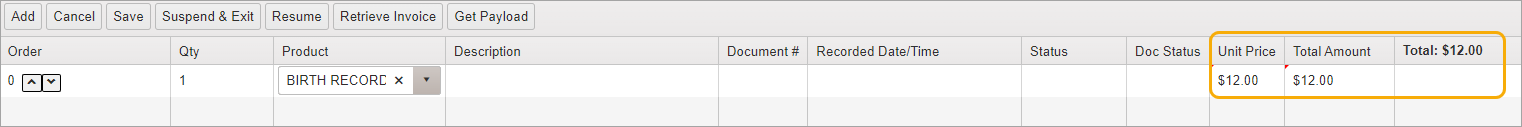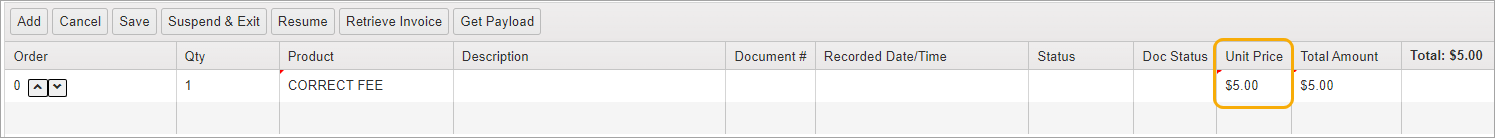 NOTE: Some Product types, such as Correct Fee, do not have any fees tied to them. To add a charge, enter the fee amount directly in Unit Price field.