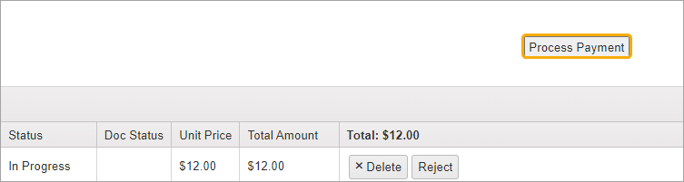 After saving the order, the Process Payment button appears.
