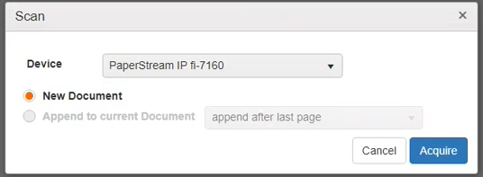 Now the scanner dialog defaults to “Append to current Document” and has dropdown options available.
