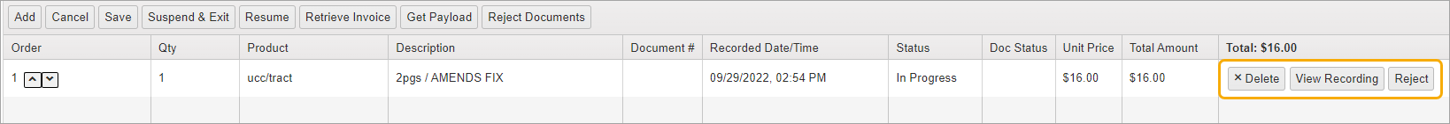 To reject a recordable item, click the Reject button.