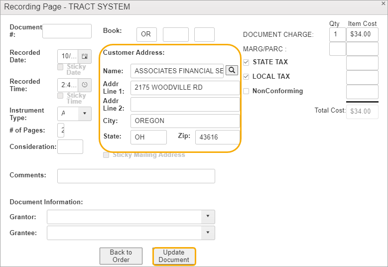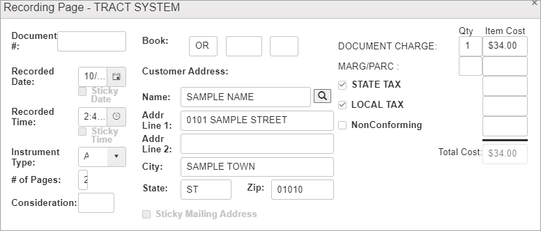 The Recording Page displays the item information which you can check and update or edit as necessary.