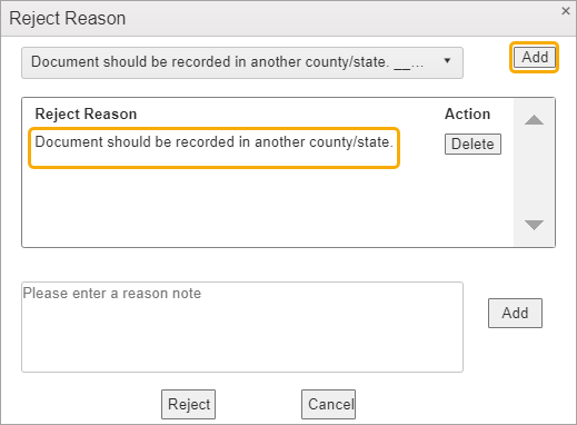 If you want to add a free-form reason, type it in the lower box and click Add.