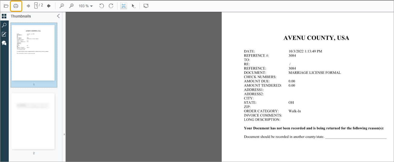 After entering reject reasons, the document viewer opens the Reject Letter for you to make any edits necessary.