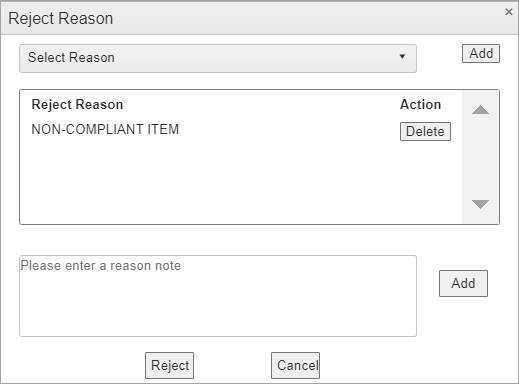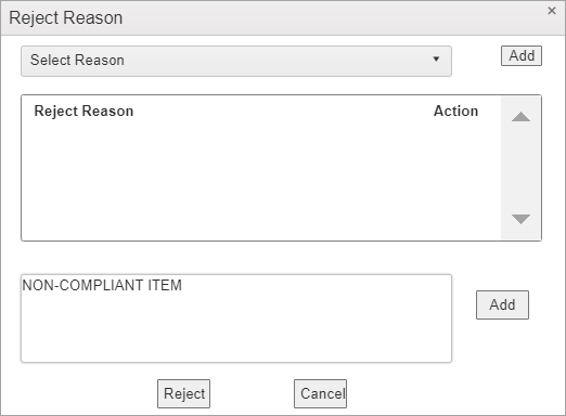 NOTE: The Reject button does not appear in non-recordable item rows.