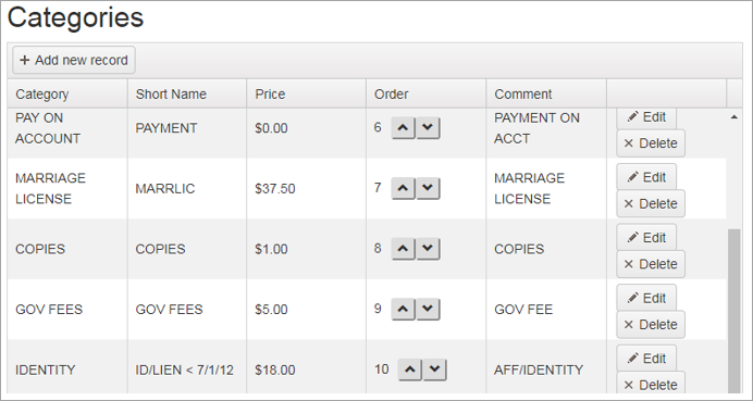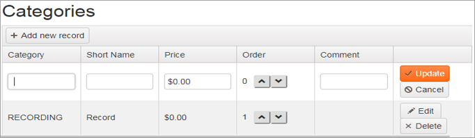 The Categories tab is used to manage fees.