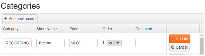 Enter the Category, a Short Name for it, the Price, and a Comment if desired.